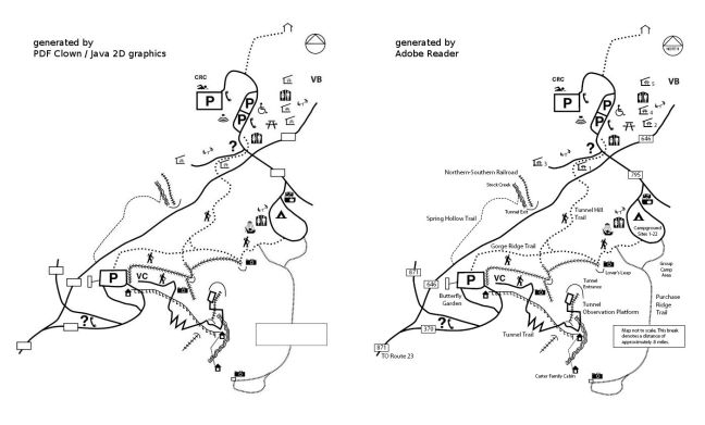Last week I was informed that USGS adopted PDF Clown for relayering their topographic maps and attaching metadata to them. Although on a technical note it’s stated that its use will be only transitory, as they are converging toward a solution natively integrated with their main application suite (TerraGo), nonetheless its service in such a production environment seems to be an eloquent demonstration of its reliability. 8)